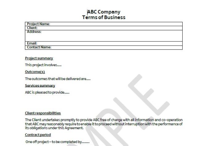 Terms of Business Sample Template